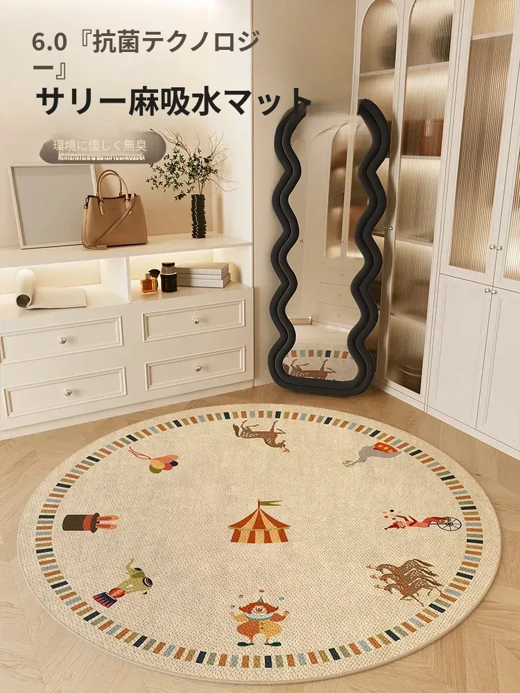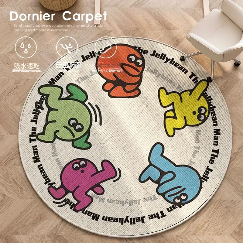 おしゃれなキャラクターラウンドカーペット|お手入れ簡単!ベッドサイドや鏡の前にぴったり|揺れる椅子にも最適|汚れに強いフットマットで、快適な空間を演出!