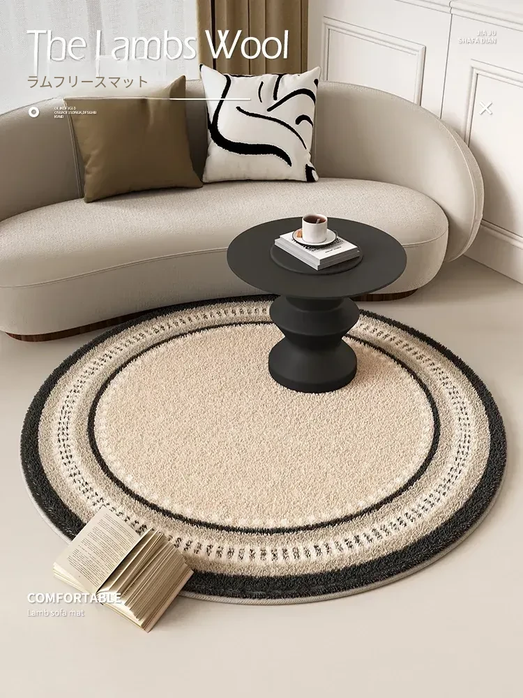 和の美を感じる侘寂スタイルの円形ラグ - インテリアにぴったり!防水・防汚機能付きで、リビング、書斎、寝室、クローゼットに最適。おしゃれなティーテーブルやソファのアクセントにもなる一品です。