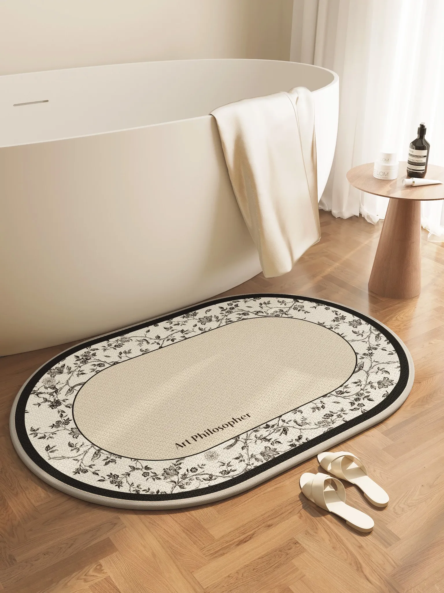 フランス風吸水バスマット|トイレやバスタブの横にぴったりな亜麻編みの滑り止めマット|おしゃれで実用的なデザインで、毎日のバスタイムを快適に演出!