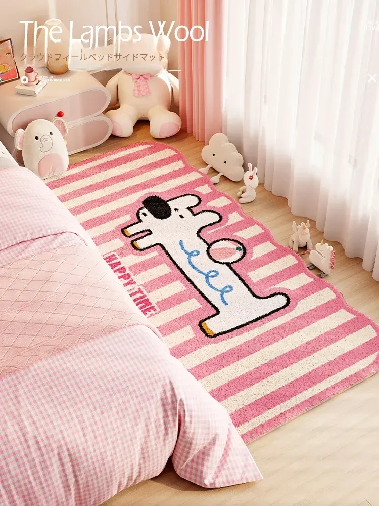 かわいいカートゥーンデザインのベッドサイドマット!ピンクの厚手ラグで、女の子の心をくすぐるお部屋にぴったり。四季を通じて使える防滑・耐汚れ仕様で、快適な足元を提供します。自宅でのくつろぎタイムに最適!