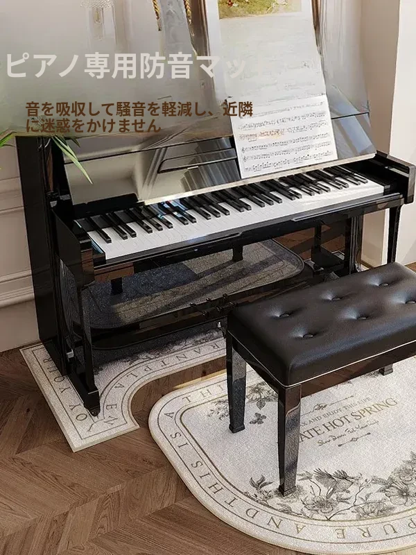 防音効果抜群!ピアノ用スタンディングカーペット - 厚手で滑り止め機能付き、リビングルームに最適な消音・減震マット。ピアノ椅子も守る防湿設計!おしゃれで機能的な異形カーペット。
