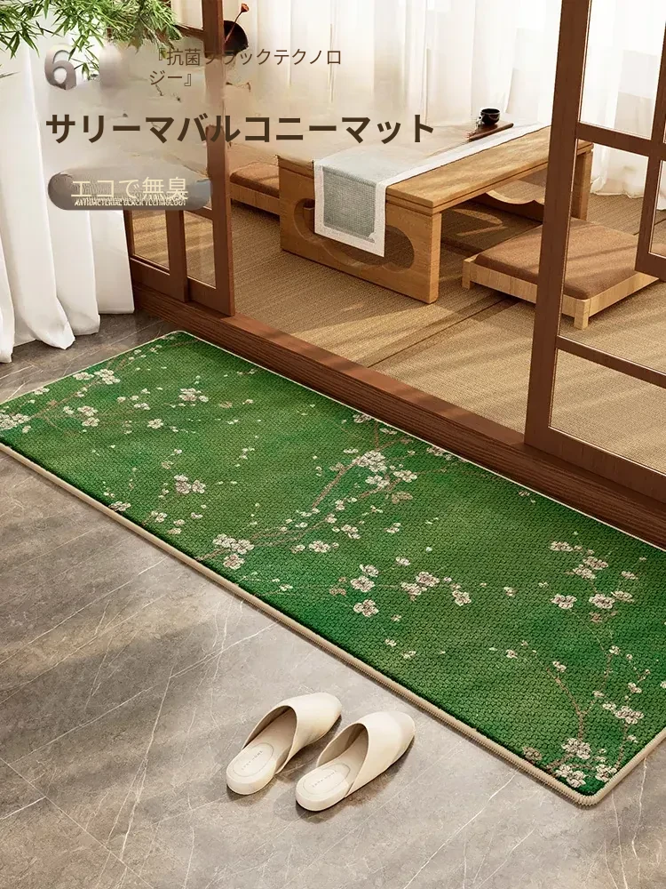 グリーンバルコニー用マット 新中式レトロデザイン カーペット 高級感漂うリラックスエリア用 滑り止め付きフロアマット
