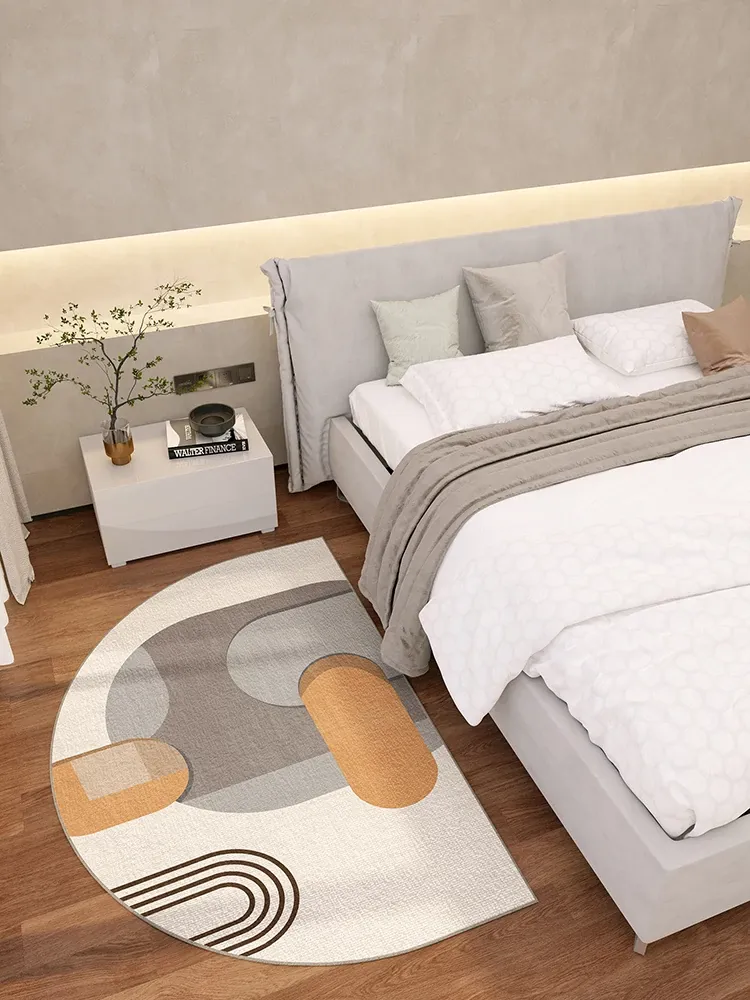 高級感漂う半円形ベッドサイドラグ - リビングや寝室にぴったり!お手入れ簡単で洗わず使えるフットマット。快適さとスタイルを両立した一品!