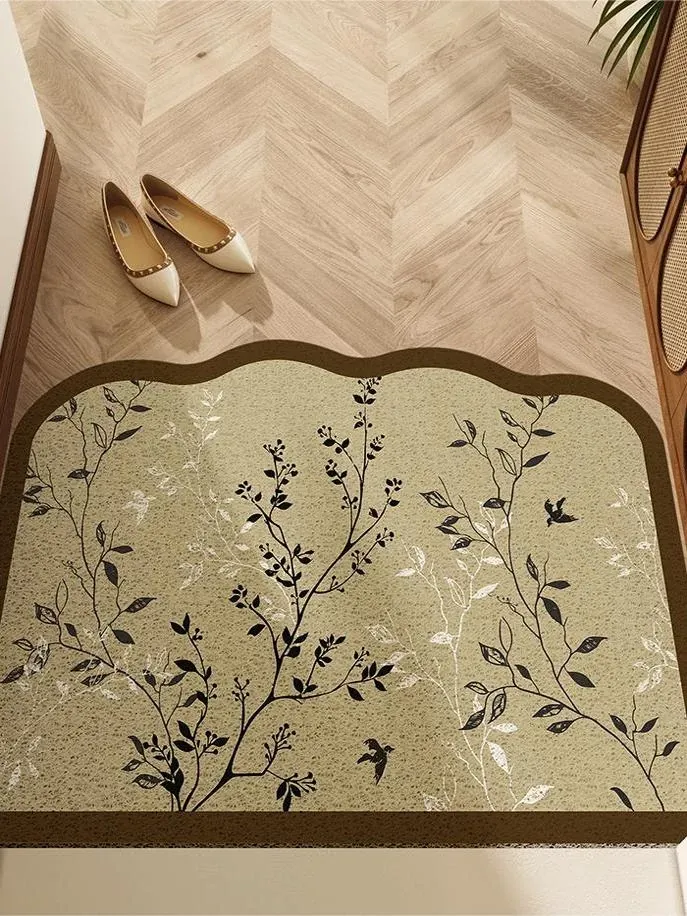 アンティーク風のエントランスマット 新中式デザインのレトロなラグ 高級感漂う滑り止め付きドアマット おしゃれな玄関にぴったり!