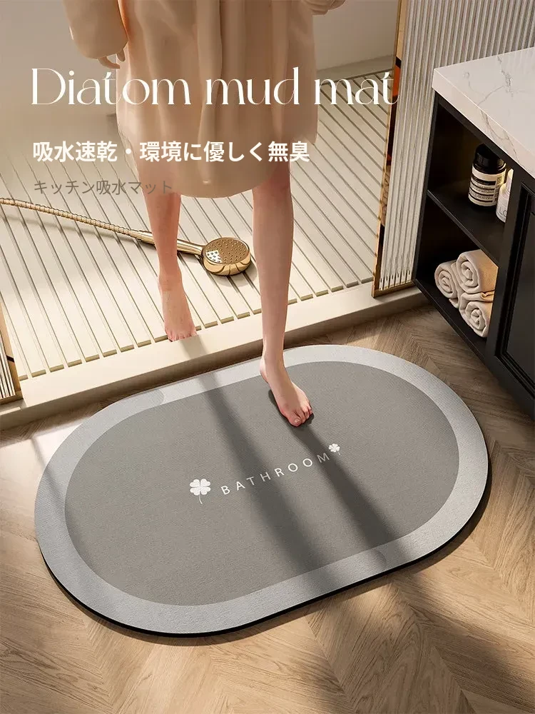 楕円形トイレ前滑り止めマット - シリカゲルで作られたバスルームカーペット、超吸水&速乾!清潔感あふれるデザインで、快適な空間を演出します。