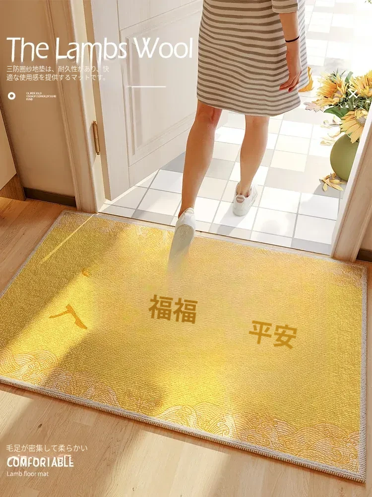 新中式デザインの入門用イエロー玄関マット!高級感漂うゴールドのカーペットで、外からの訪問者をお迎え。カット可能で、あなたの玄関にぴったりフィット!おしゃれで機能的な一品をお見逃しなく!