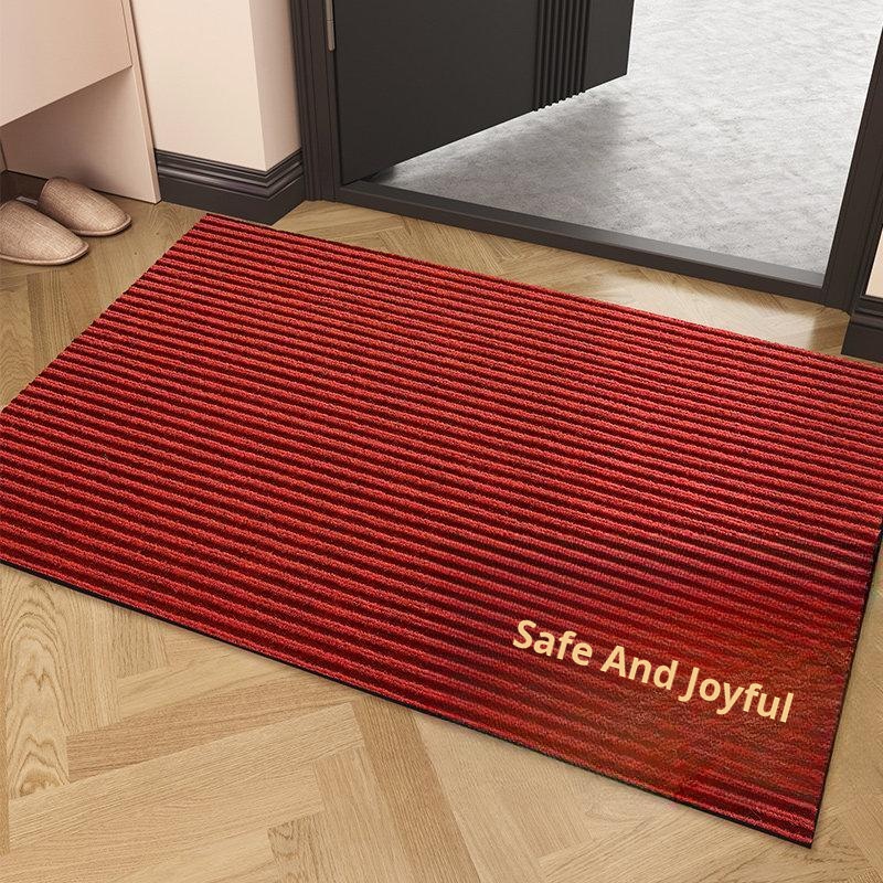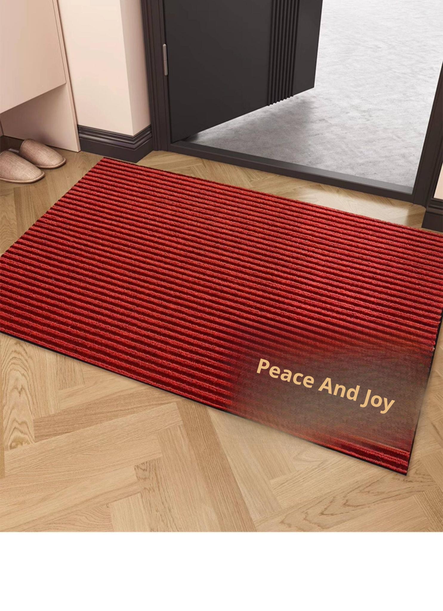 Peace and Joy B Red-Double Stripe Embroidered Floor Mat