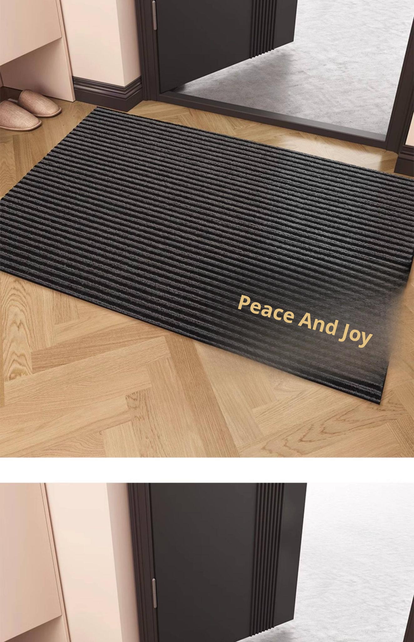 Peace and Joy - Gray Double Stripe Embroidered Entrance Floor Mat
