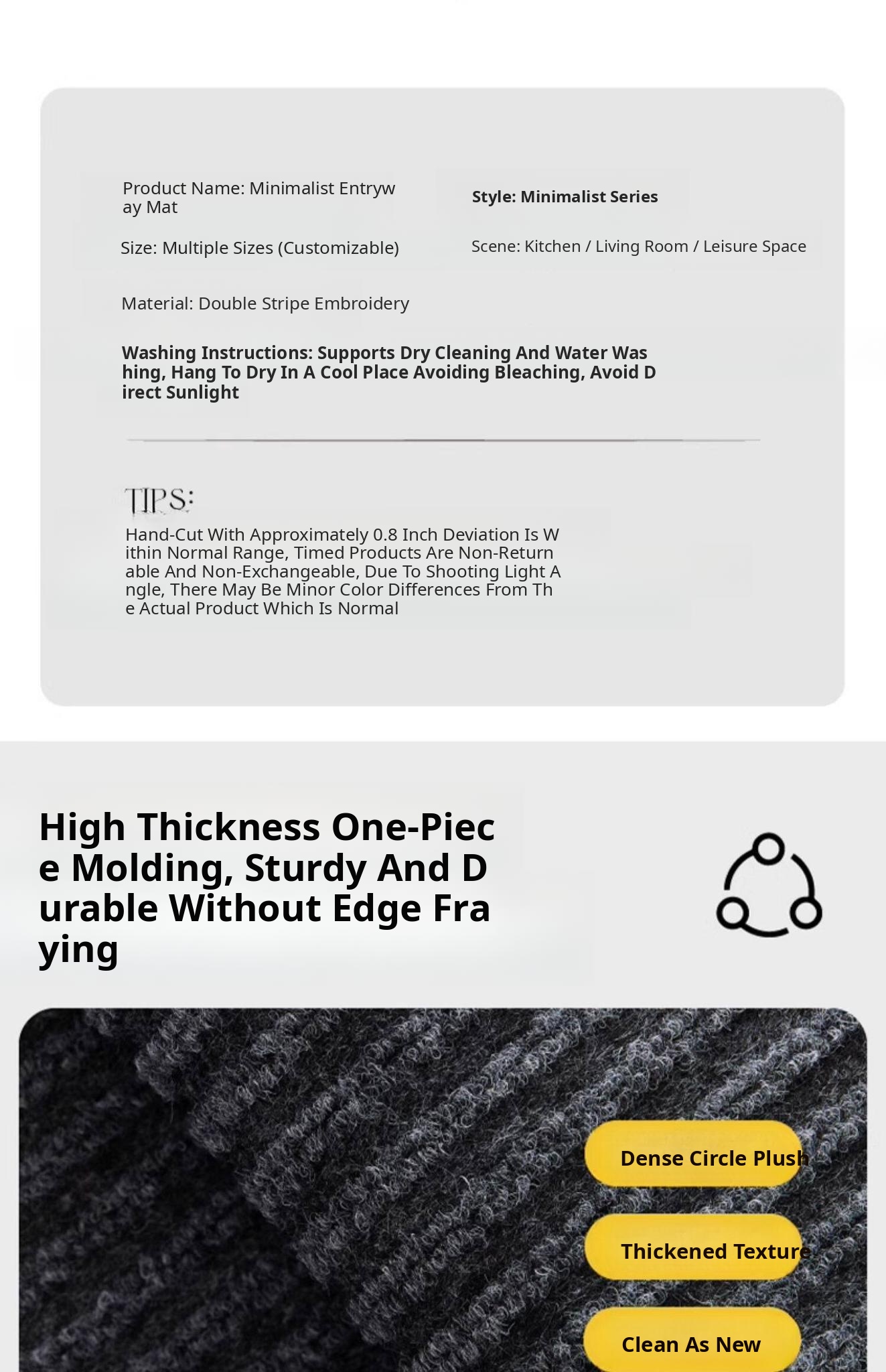 19.69in*31.50in [Water-Absorbent, Wear-Resistant, Double-Sided Anti-Slip]