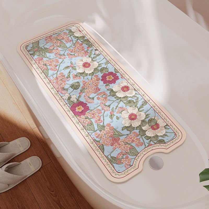 French Style Suction Bath Mat - Non-Washable, Easy to Clean, Non-Slip Bathroom Rug for Bathtubs - Prevents Slips and Falls, Perfect for a Safe and Stylish Bathing Experience!