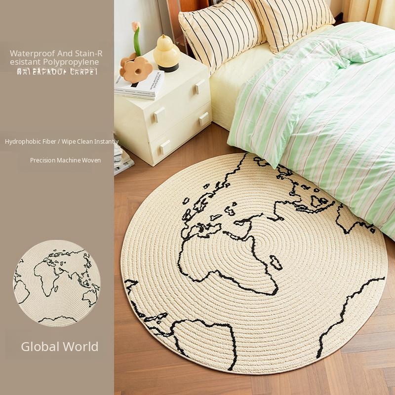 Premium Waterproof Round Area Rug for Kids' Room - Easy-Clean, Stain-Resistant Reading Nook and Bedside Mat, Elevating Your Bedroom's Luxury Feel