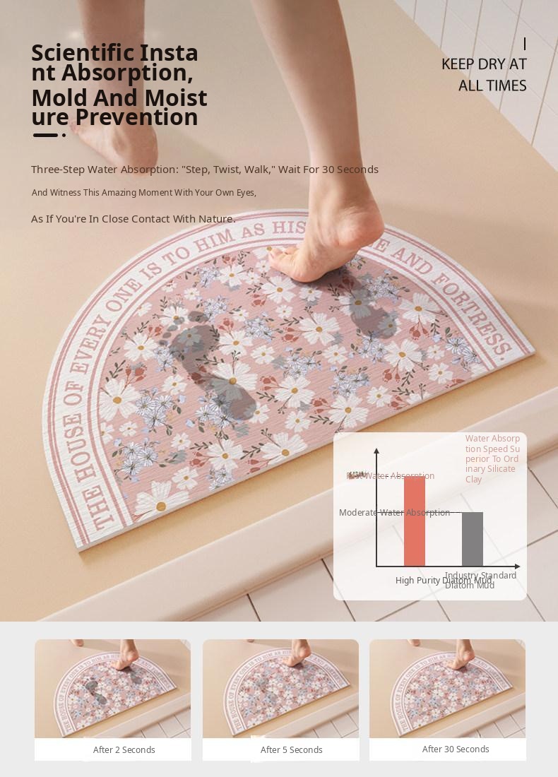 Super Absorbent Hard Diatom Mud Bath Mat - Non-Slip, Stain-Resistant Bathroom Rug for Entrance - Keep Your Floors Dry and Safe! Perfect for Toilets and Showers.