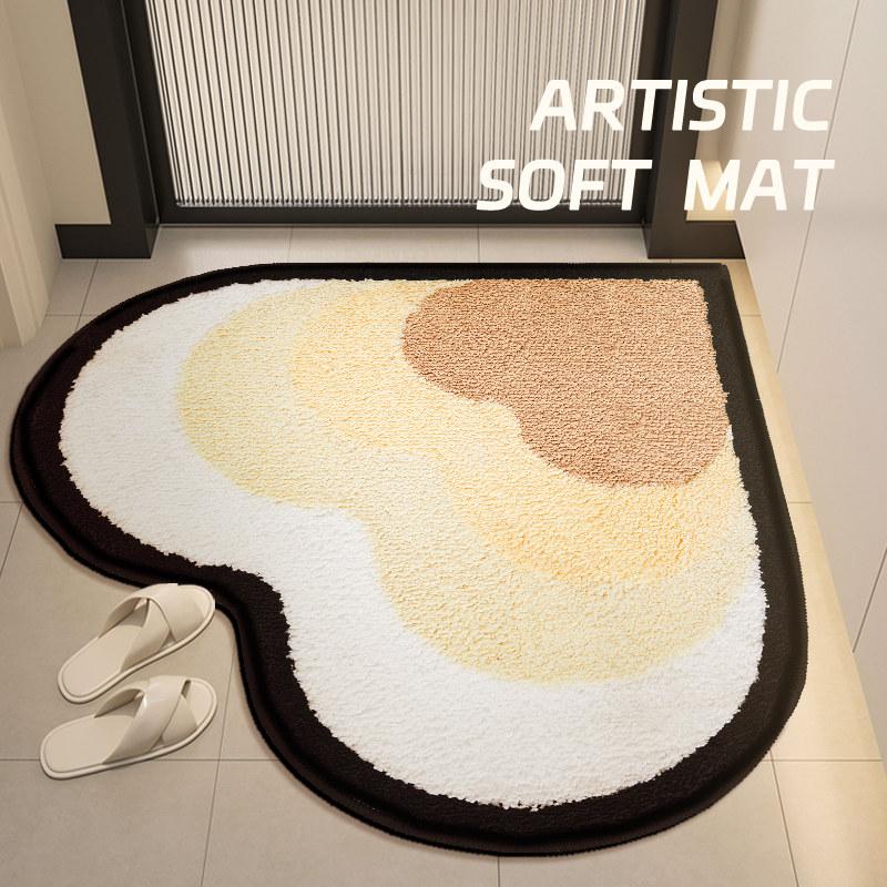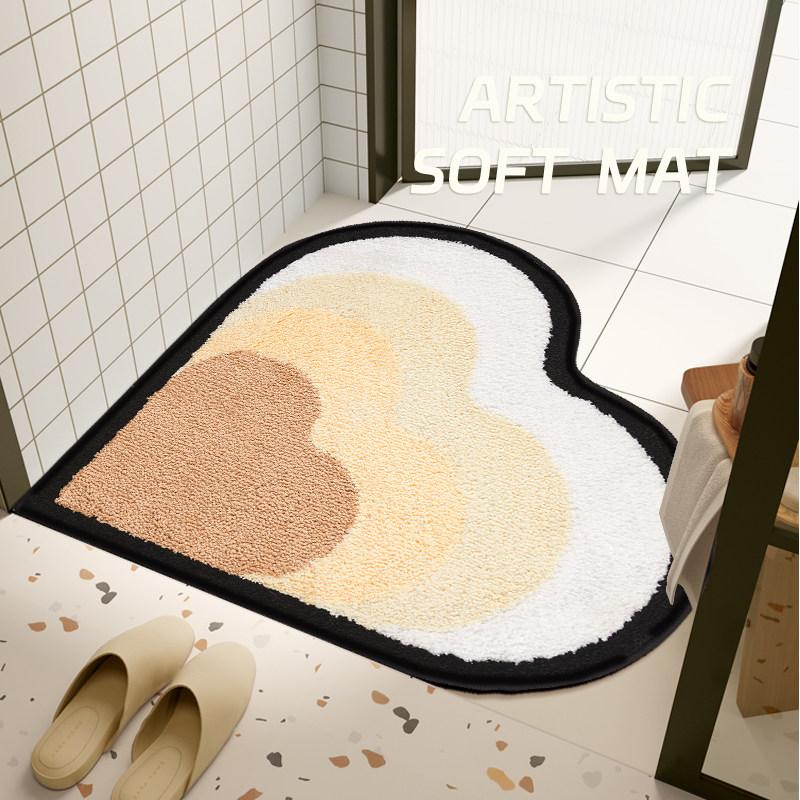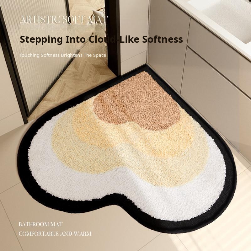 Winter Plush Heart-Shaped Absorbent Bathroom Mat – Cozy Doorway Rug for Home, Perfect for Your Restroom or Washroom, Soft Velvet Carpet to Keep Your Feet Warm and Dry