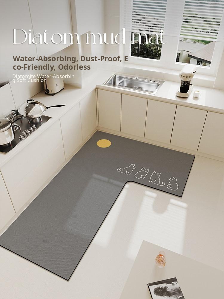 Premium Kitchen Mat - L-Shaped Diatom Mud Design, Water-Absorbent, Oil-Resistant, Non-Slip, Easy to Clean, Stain-Resistant 7-Shape Carpet