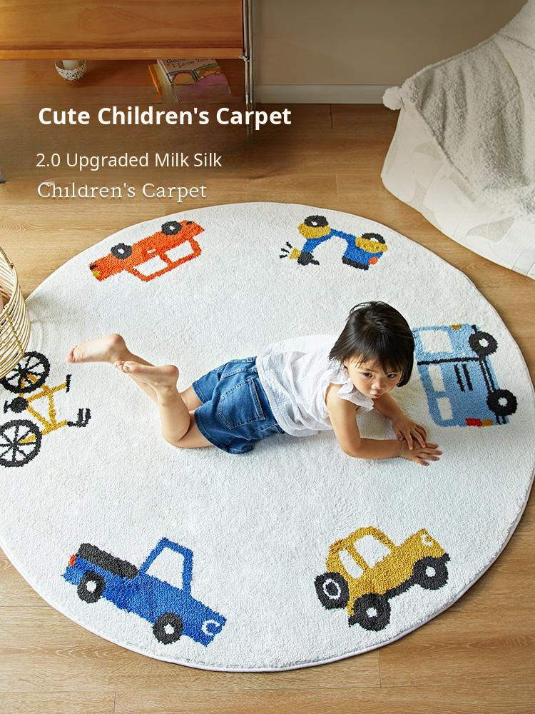 Kids' Cartoon Round Milk Silk Rug - Cozy Reading and Play Area Mat for Bedroom and Study Desk - Soft, Minimalist Design Perfect for Your Child's Space