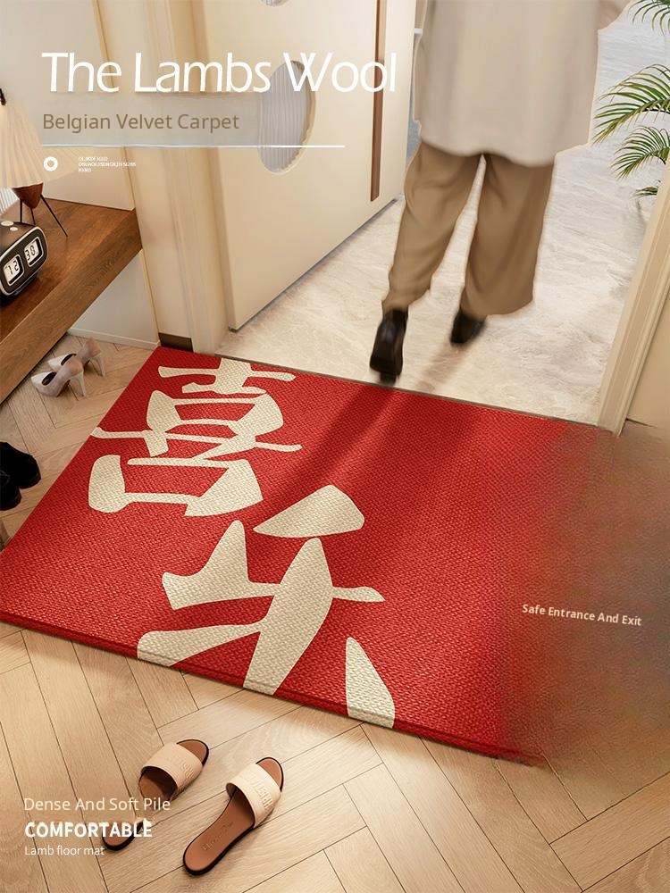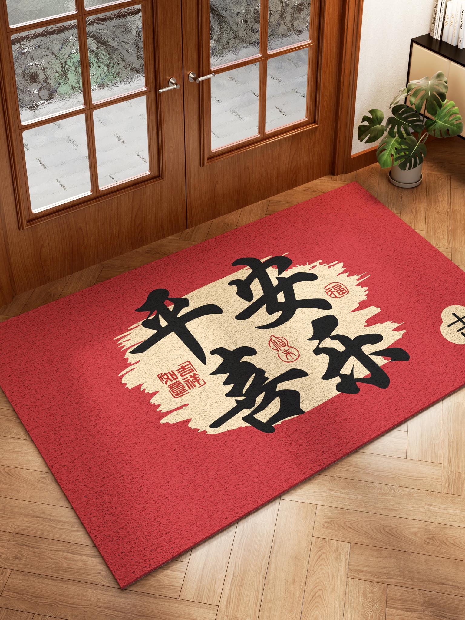 Red New Year Welcome Mat - Joyful and Safe Entryway Door Mat, Customizable Carpet for Home Entryway, Soft Loop Design for Stylish Décor