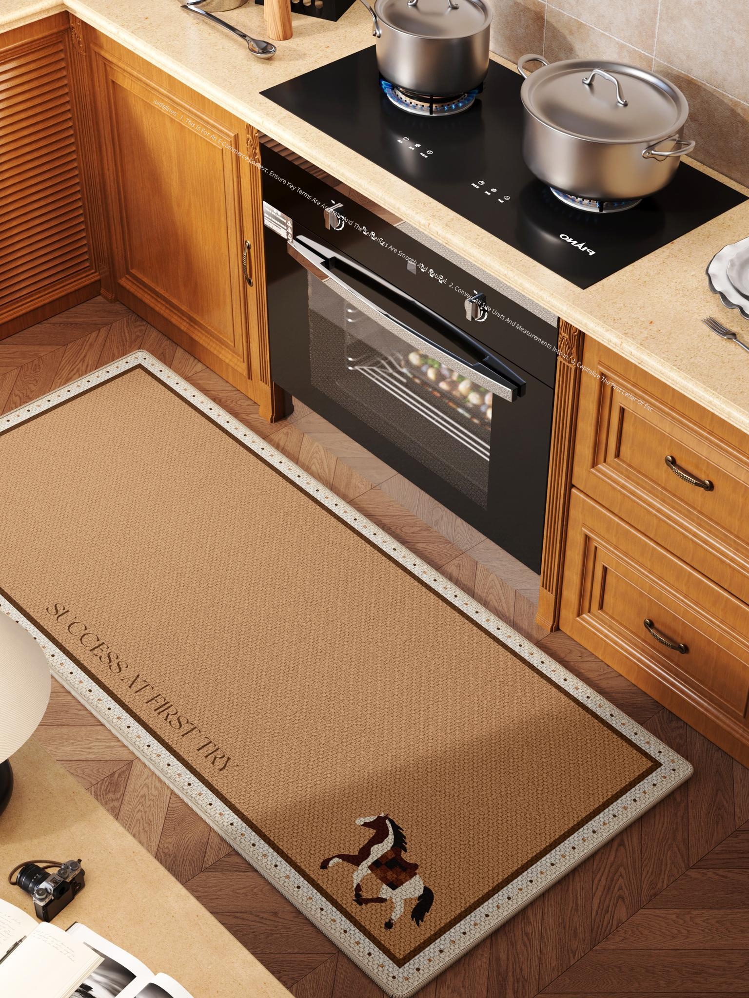 Premium Vintage Woven Kitchen Mat for the Year of the Horse - Thick, Absorbent, Non-Slip, Oil-Resistant, and Stain-Resistant Foot Mat, No Washing Required!