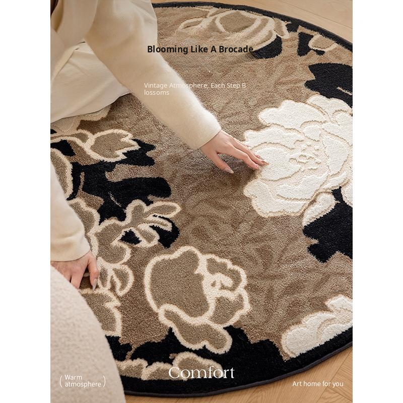 Luxurious Round Area Rug for Living Room - Non-Slip Soft Carpet for Sofa and Bedroom, Elegant French Design, Perfect for Coffee Table and Home Décor
