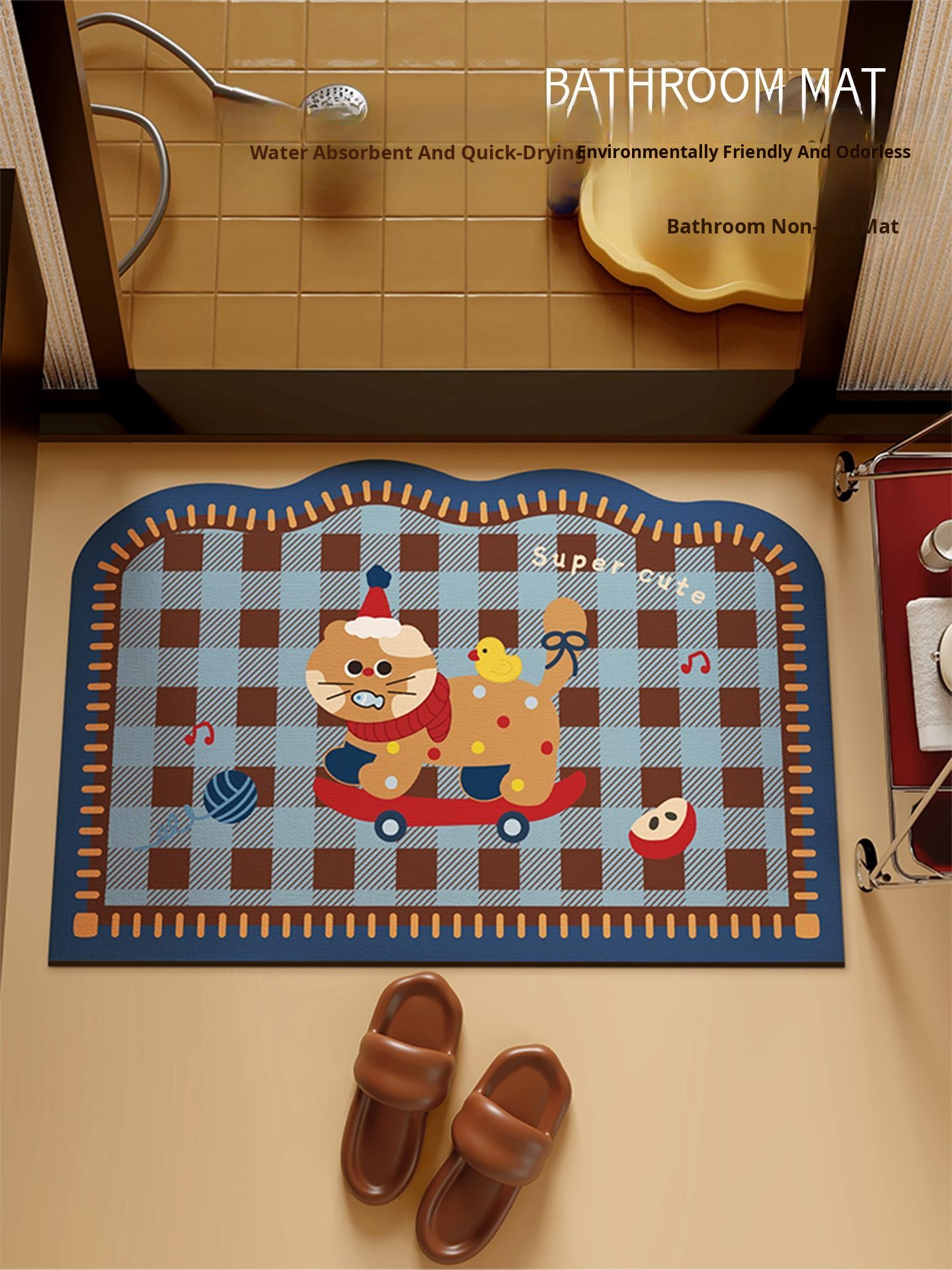 Cartoon Waterproof Bath Mat - Non-Slip Memory Foam Door Mat for Bathroom Entry, Perfect for Toilet Entrance, Soft and Absorbent Rug