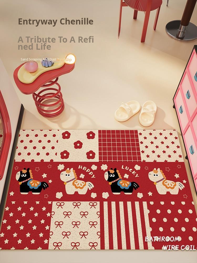 Red Year of the Horse Indoor Entrance Mat - Non-Slip Dirt-Blocking Doormat with Easy-Clean Loop Pile Design, Perfect for Your Home Entryway!
