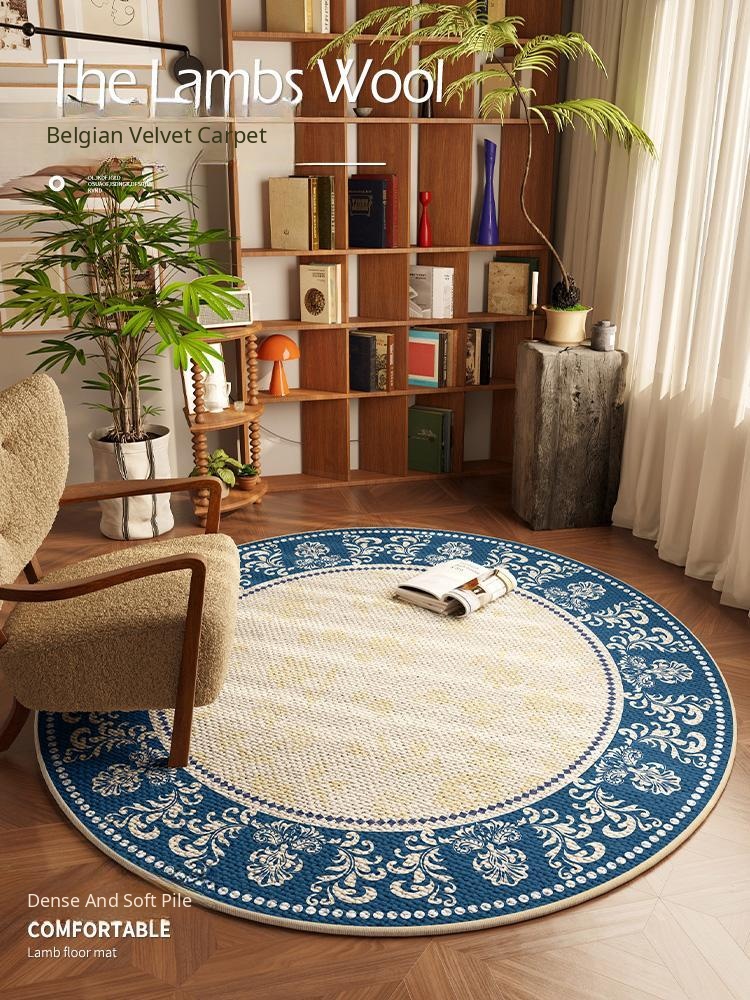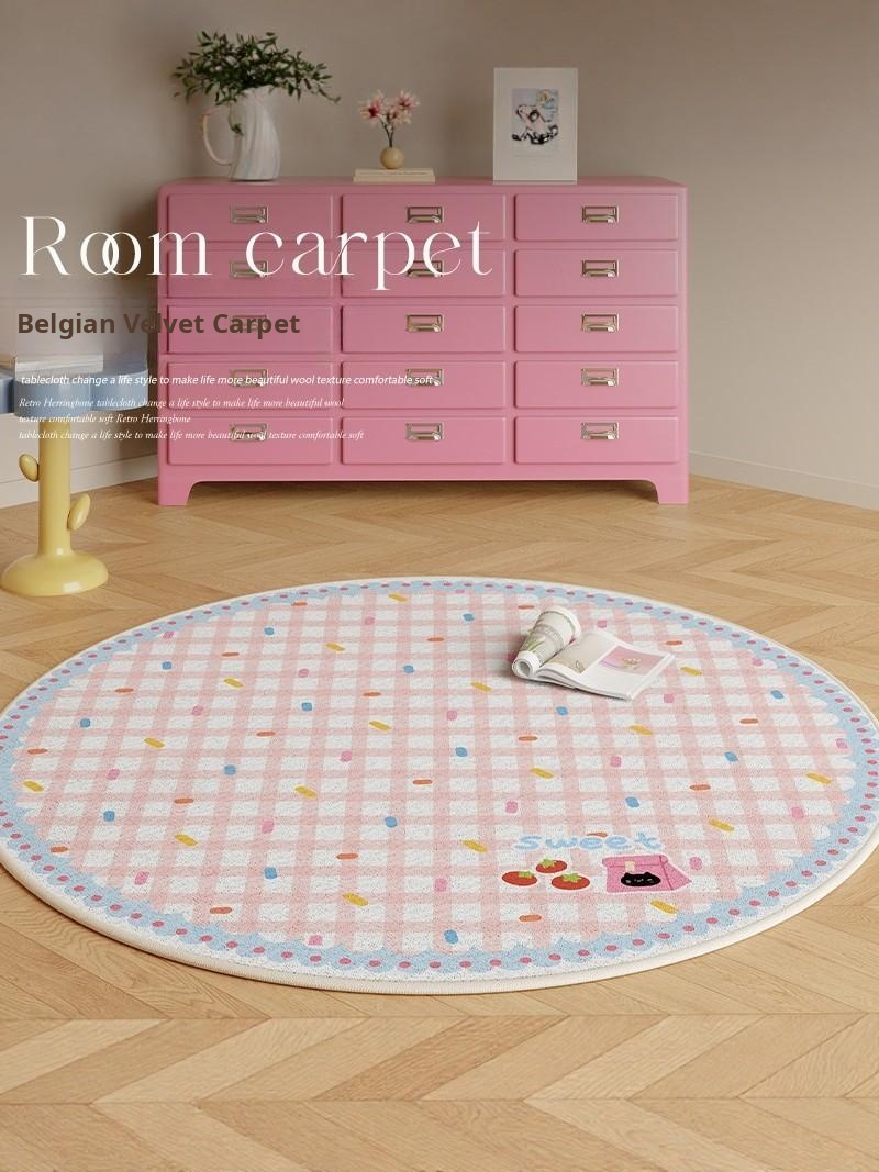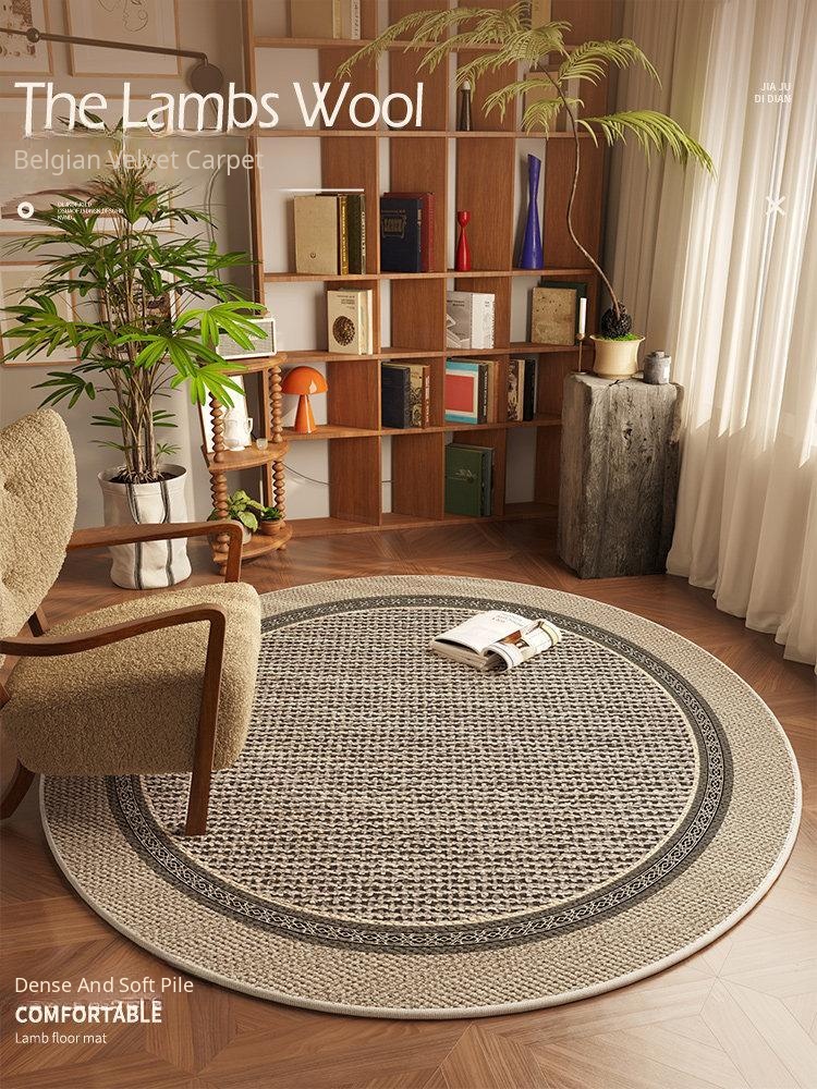 French Cream-Style Small Carpet for Living Room - 2026 New Luxury Round Checkered Area Rug for Bedroom and Bedside, Elevate Your Space with Sophistication and Comfort!