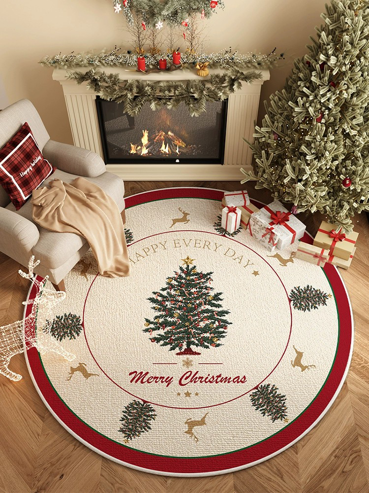 Luxurious Round Christmas Tree Holiday Carpet - Elegant Atmosphere Mat for Bedroom and Living Room, Stylish Decorative Throw Rug for Sofa