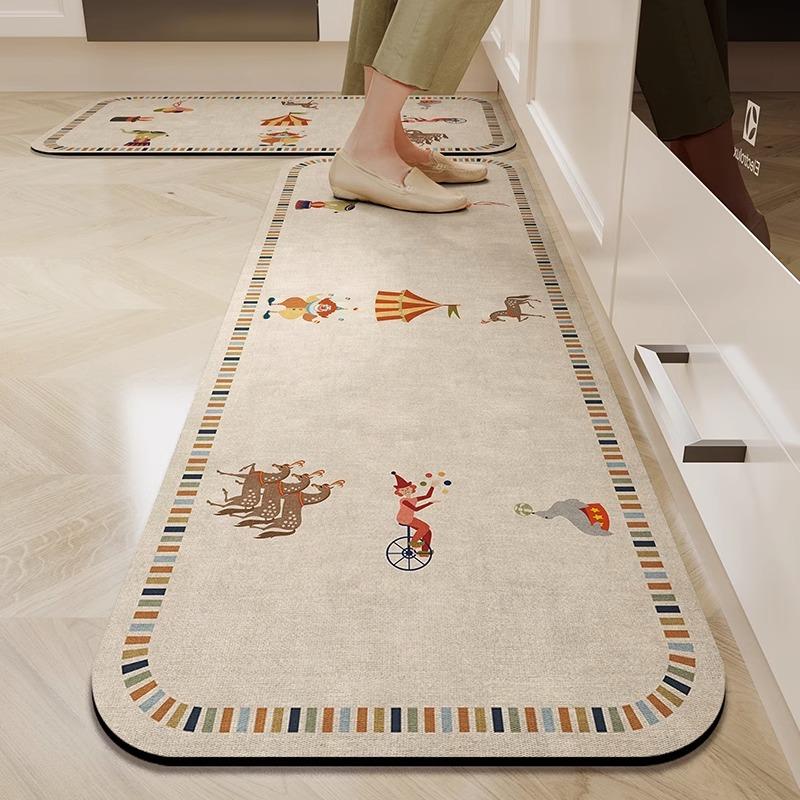 Vintage American Kitchen Mat - French Diatomite Water-Absorbent, Oil-Resistant, Easy-Clean Non-Slip Floor Rug
