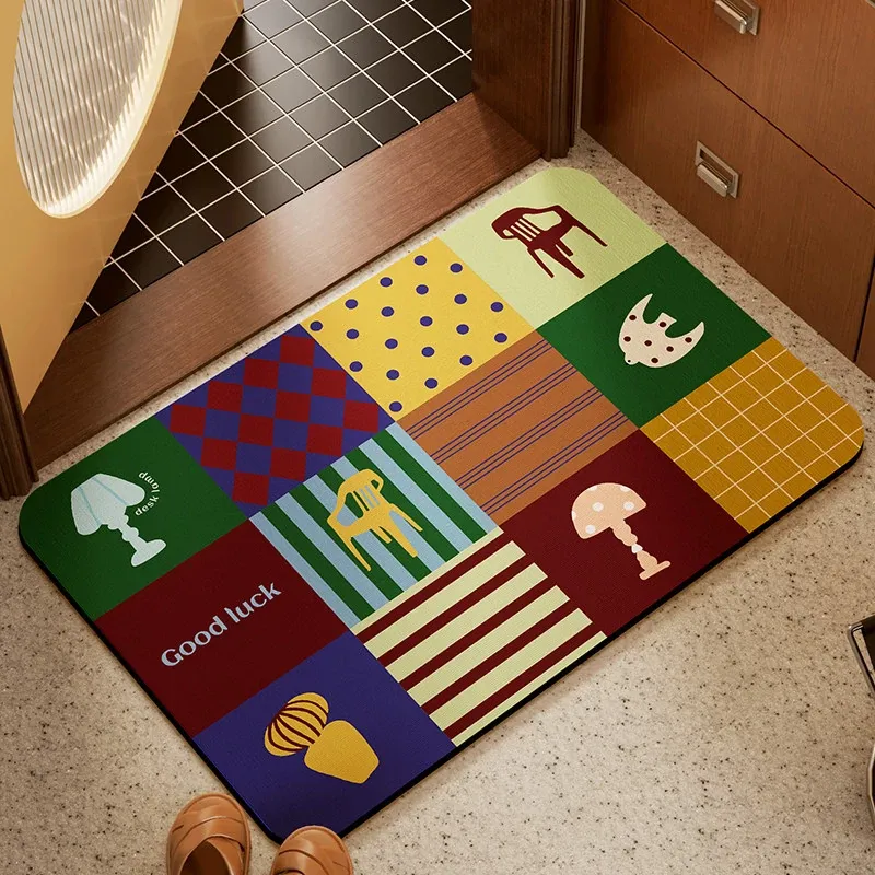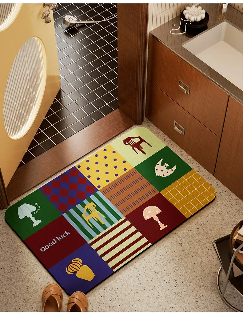 レトロな方形ブロックの珪藻土バスマット-四隅丸角