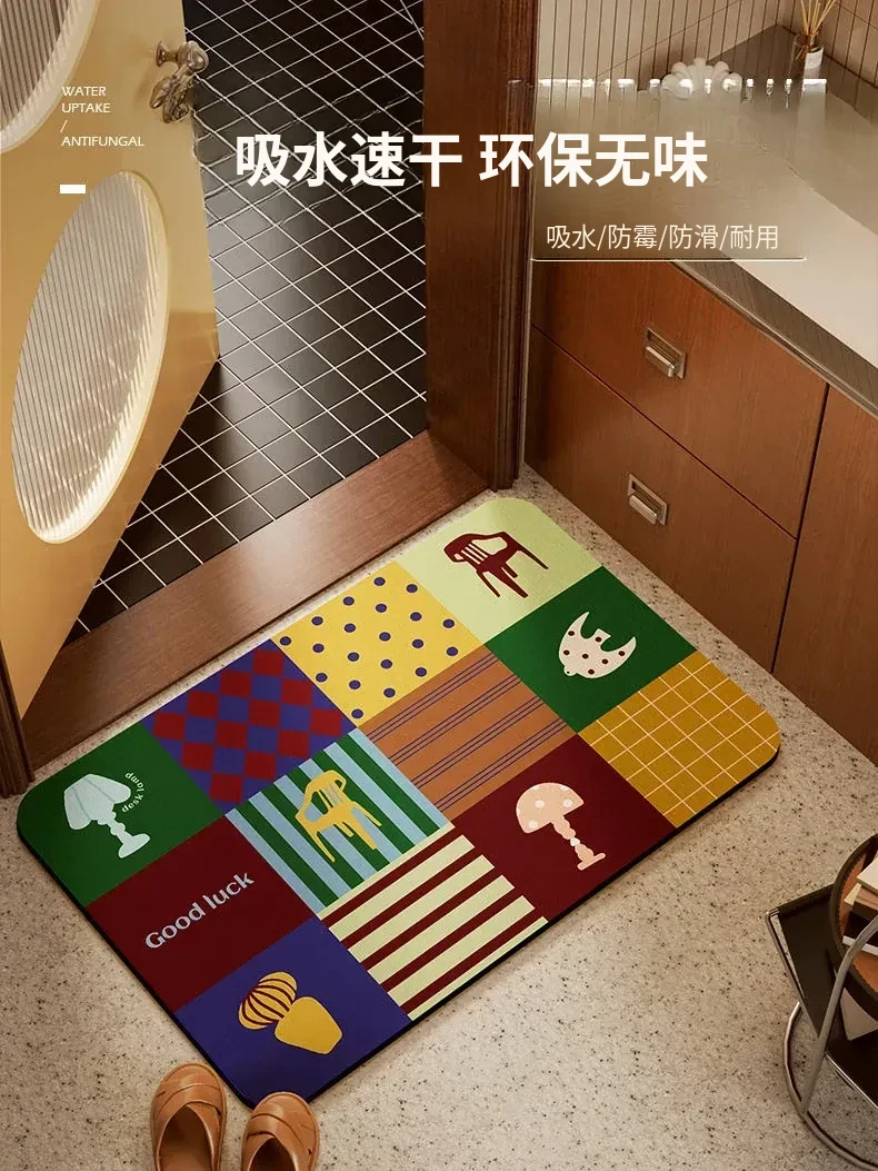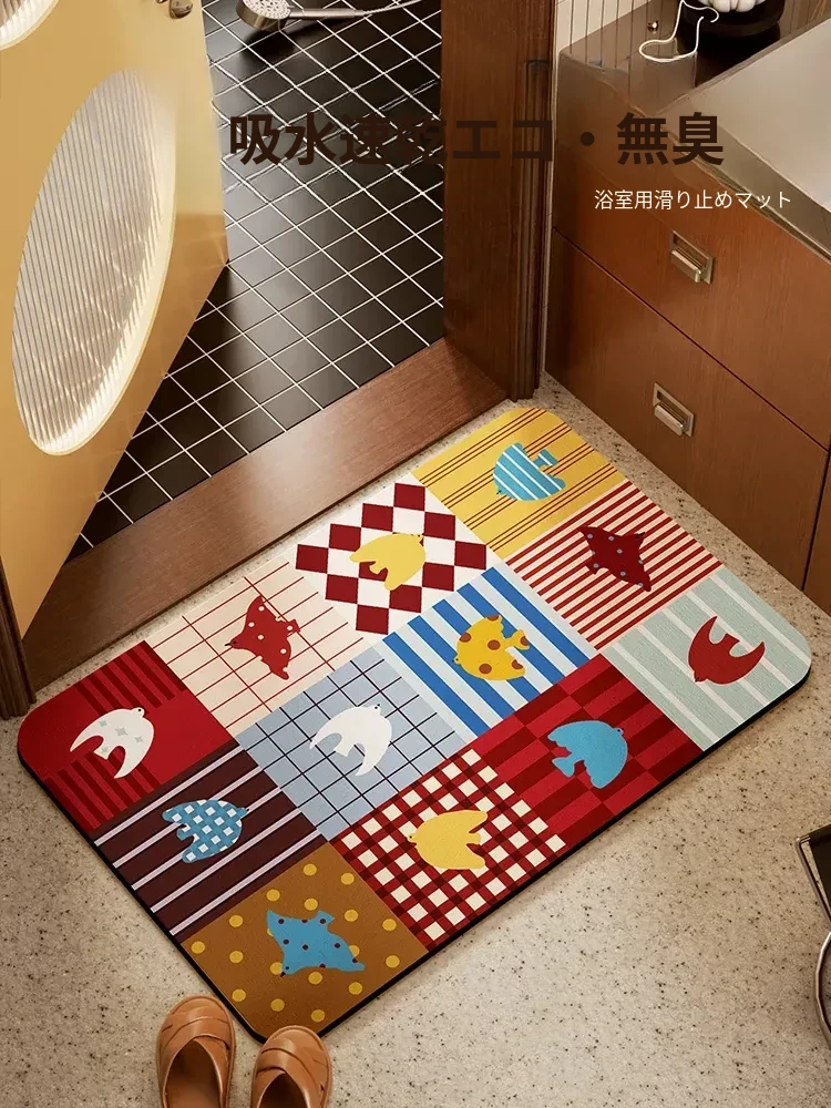 トイレの入り口専用 吸水バスルームマット 防滑・厚手デザイン お手入れ簡単!おしゃれで実用的なトイレ用足元マット