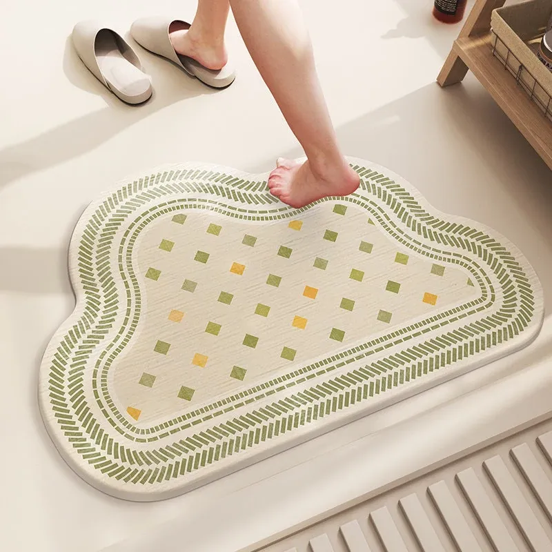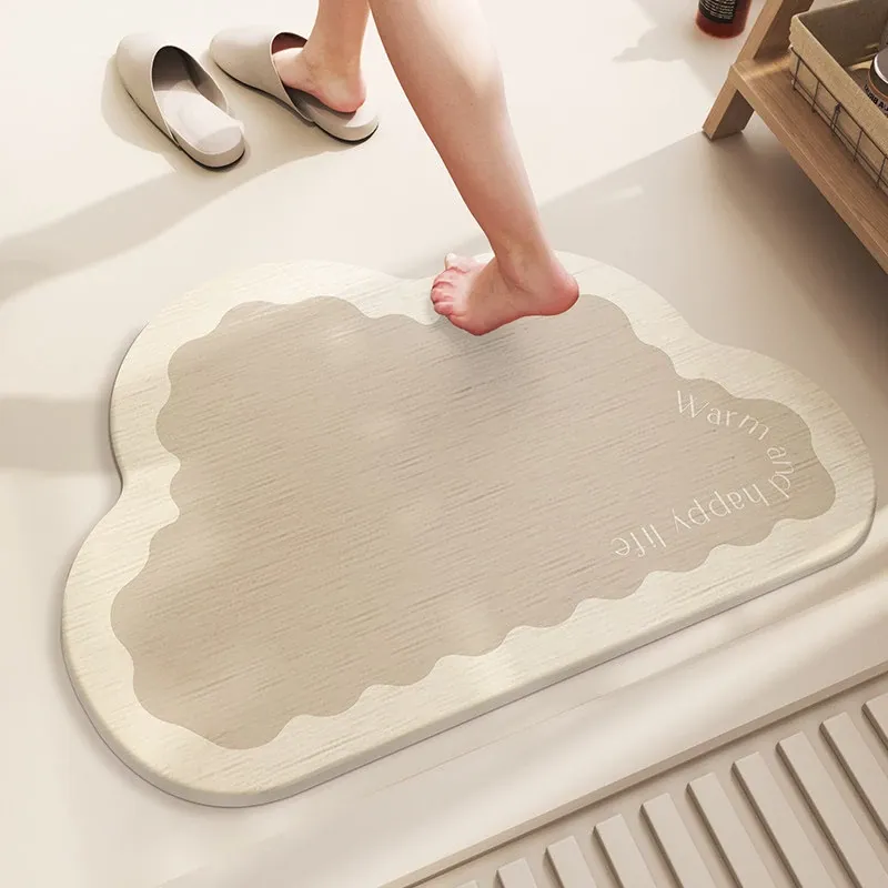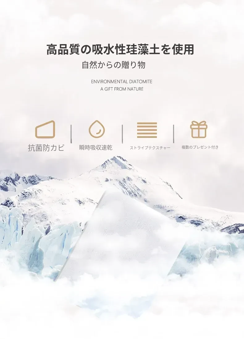 雲の形をした特殊な硬いシリカ藻マット、吸水性抜群&滑り止め付き!トイレやバスルームに最適な速乾性マットで、清潔で快適な足元を実現します。おしゃれなデザインでインテリアにもピッタリ!