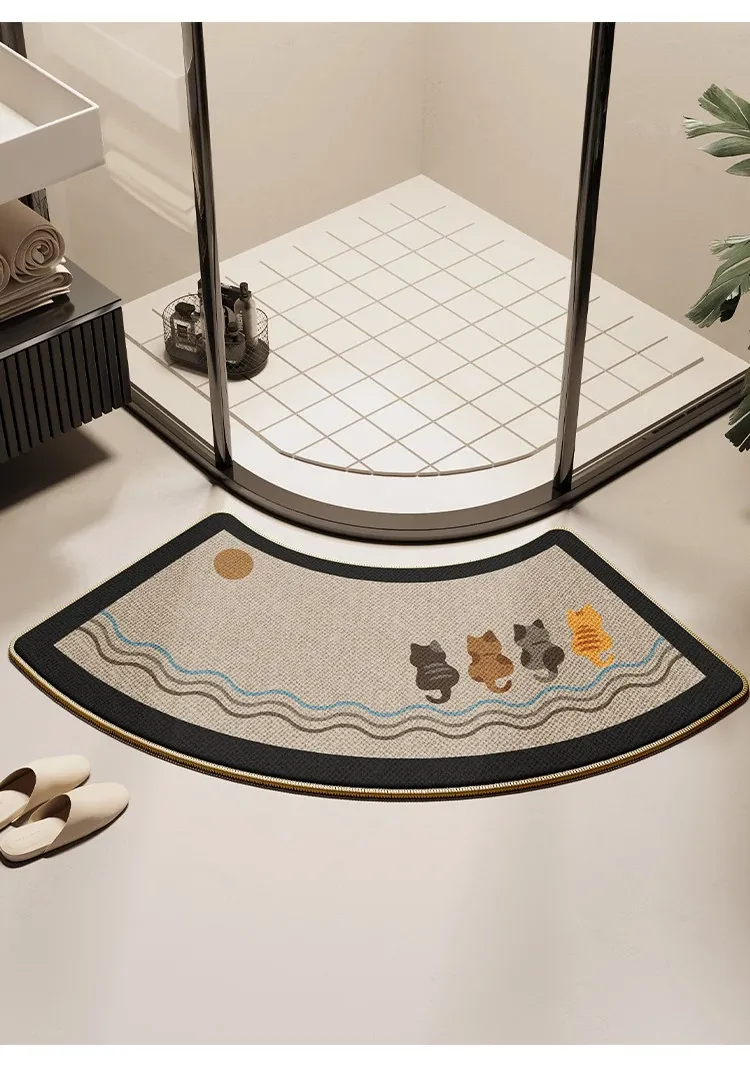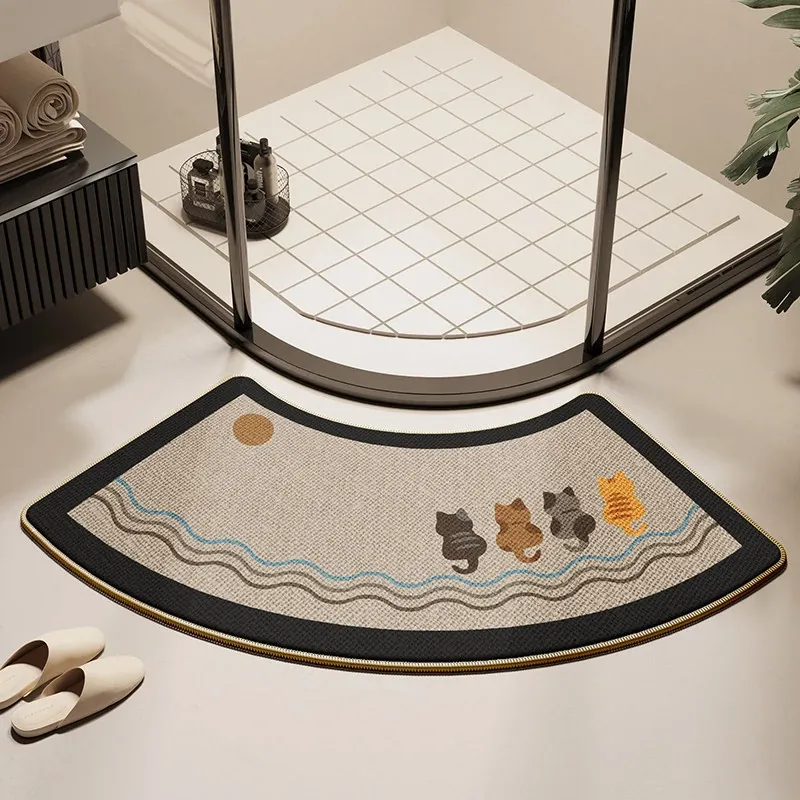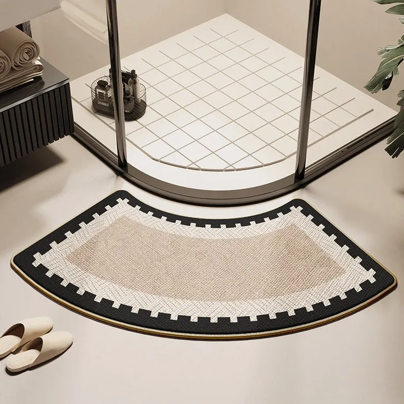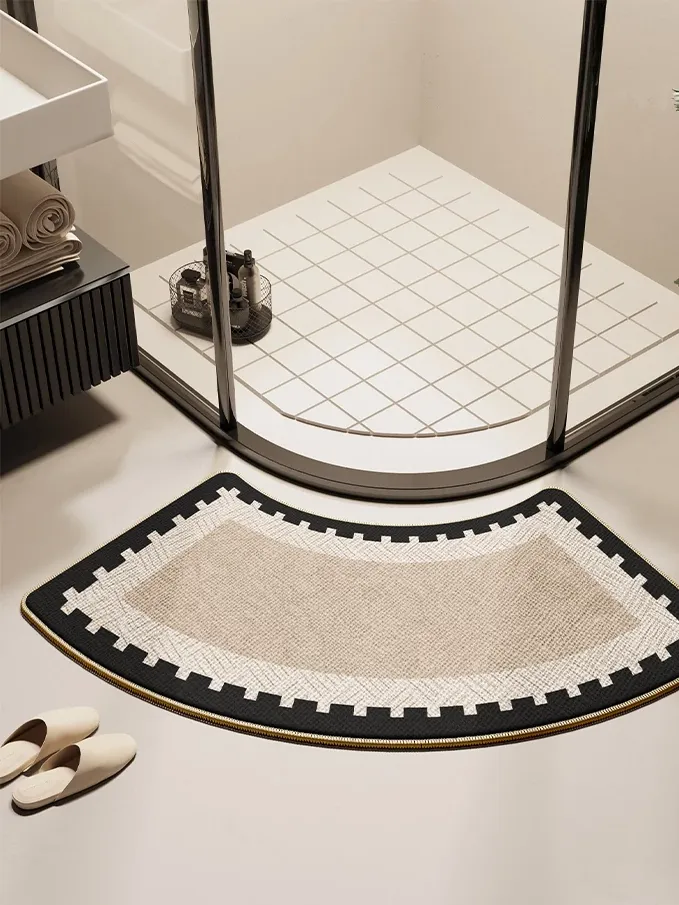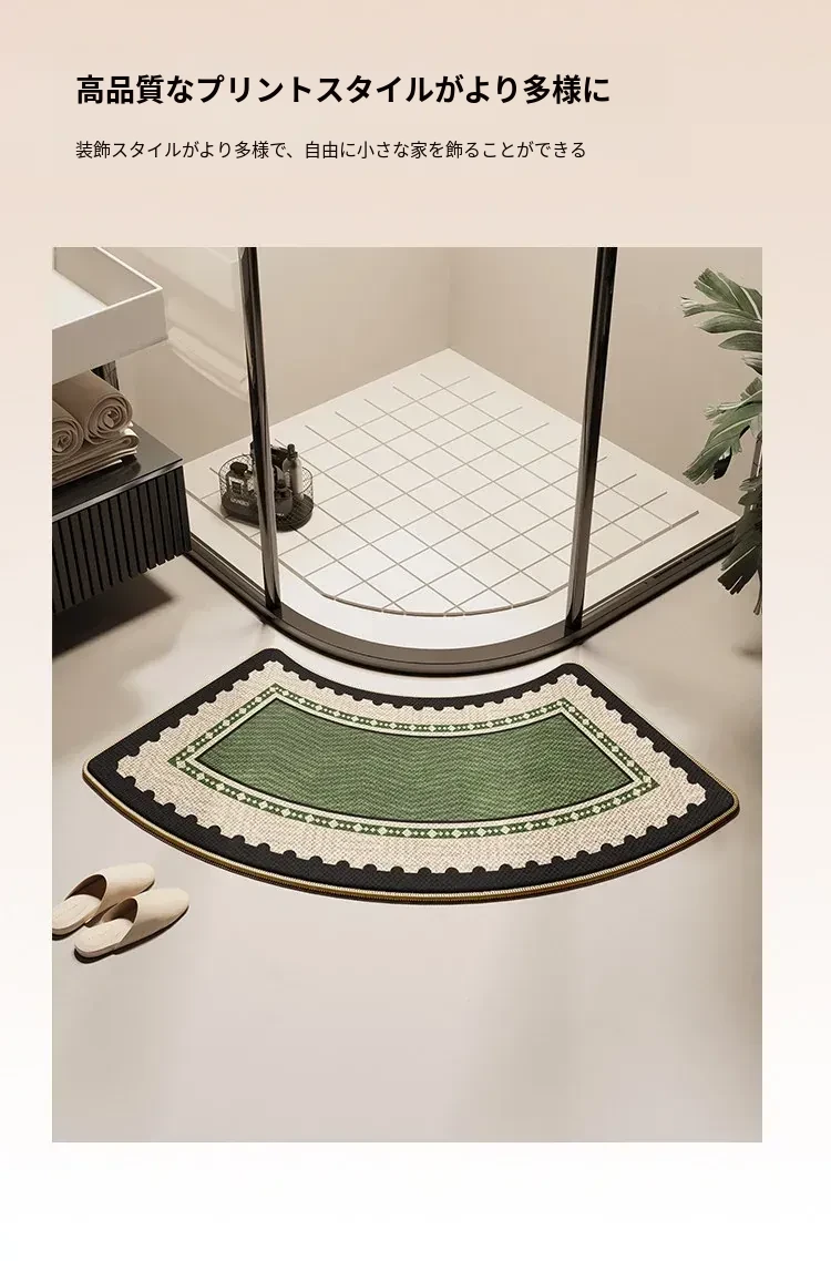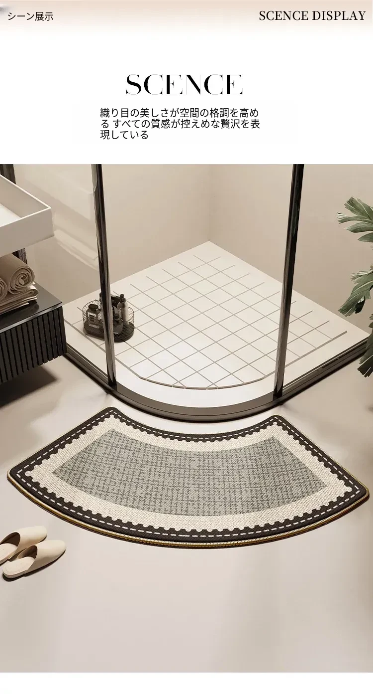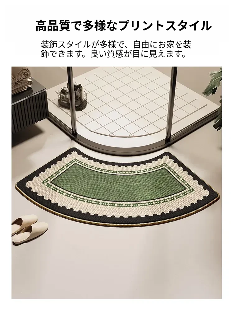 バスルーム用アーチ型マット - 高級感溢れるデザインで、おしゃれなトイレに最適!滑り止め&吸水性抜群、シャワールームの入り口にぴったりな特別な足元マット。