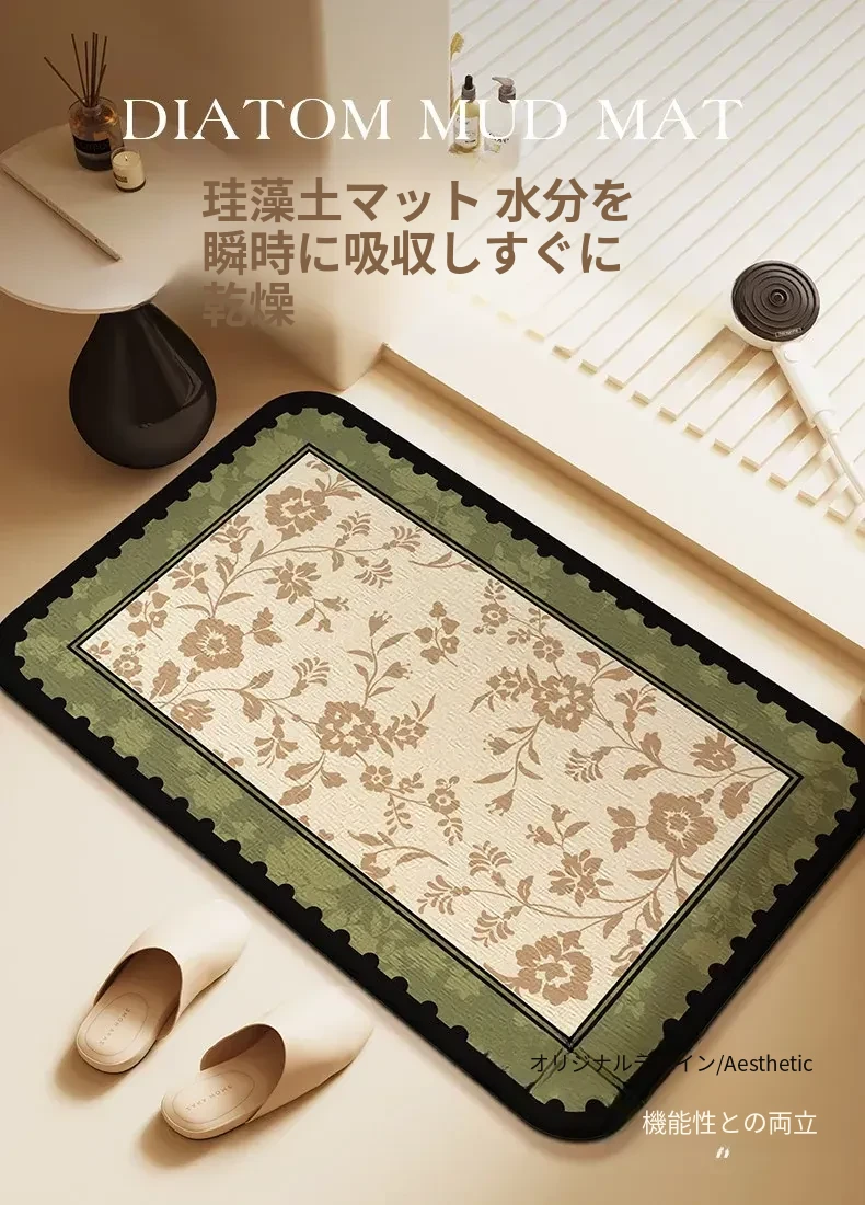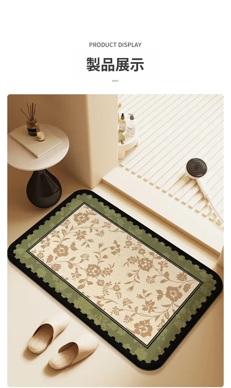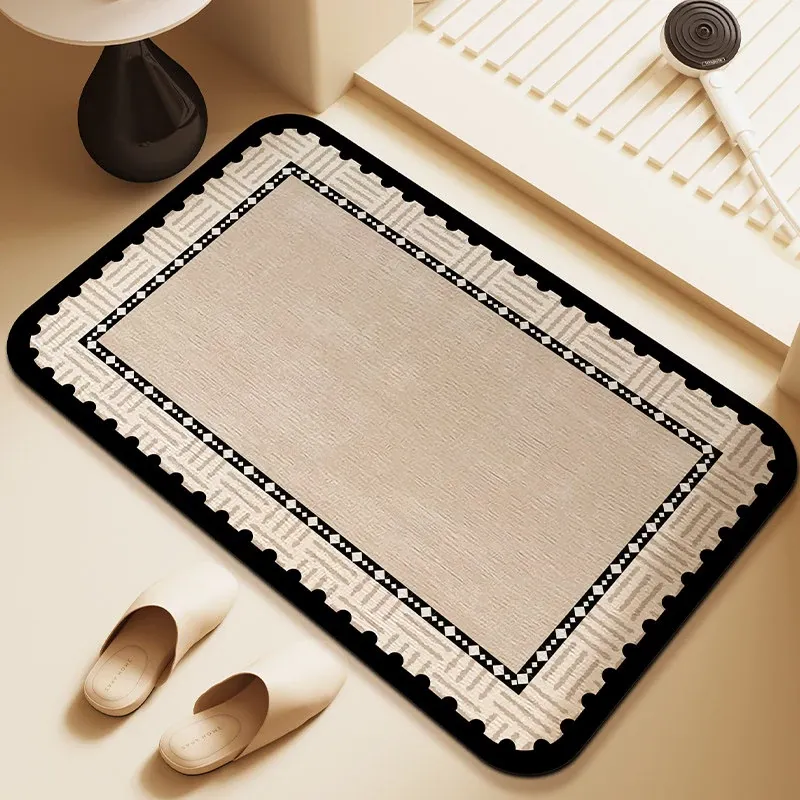 アメリカンスタイル 吸水バスマット トイレ用ドアマット おしゃれな硬質シリカゲル 雰囲気のある高級感 滑り止め付き 足元を優雅に演出!