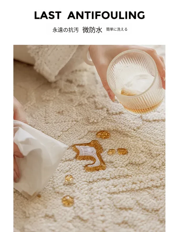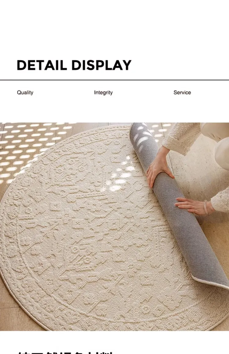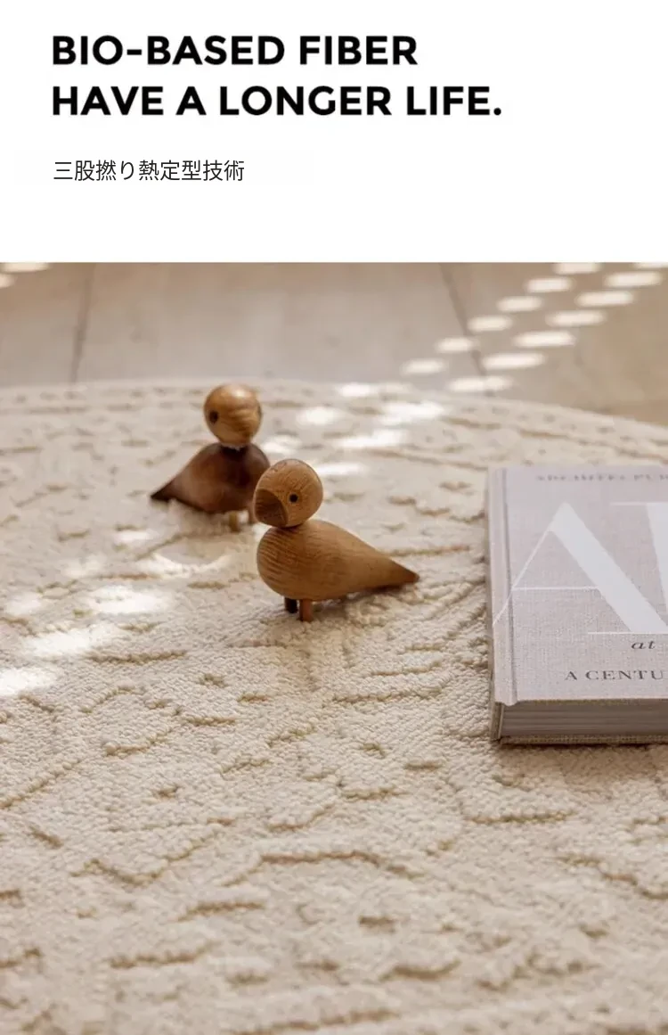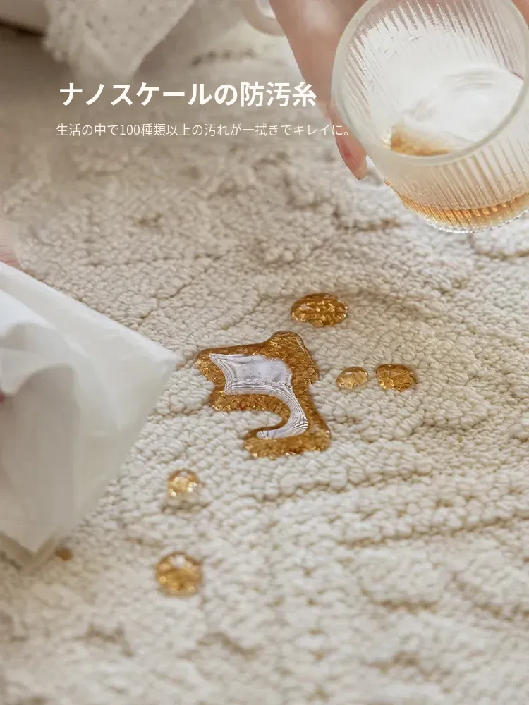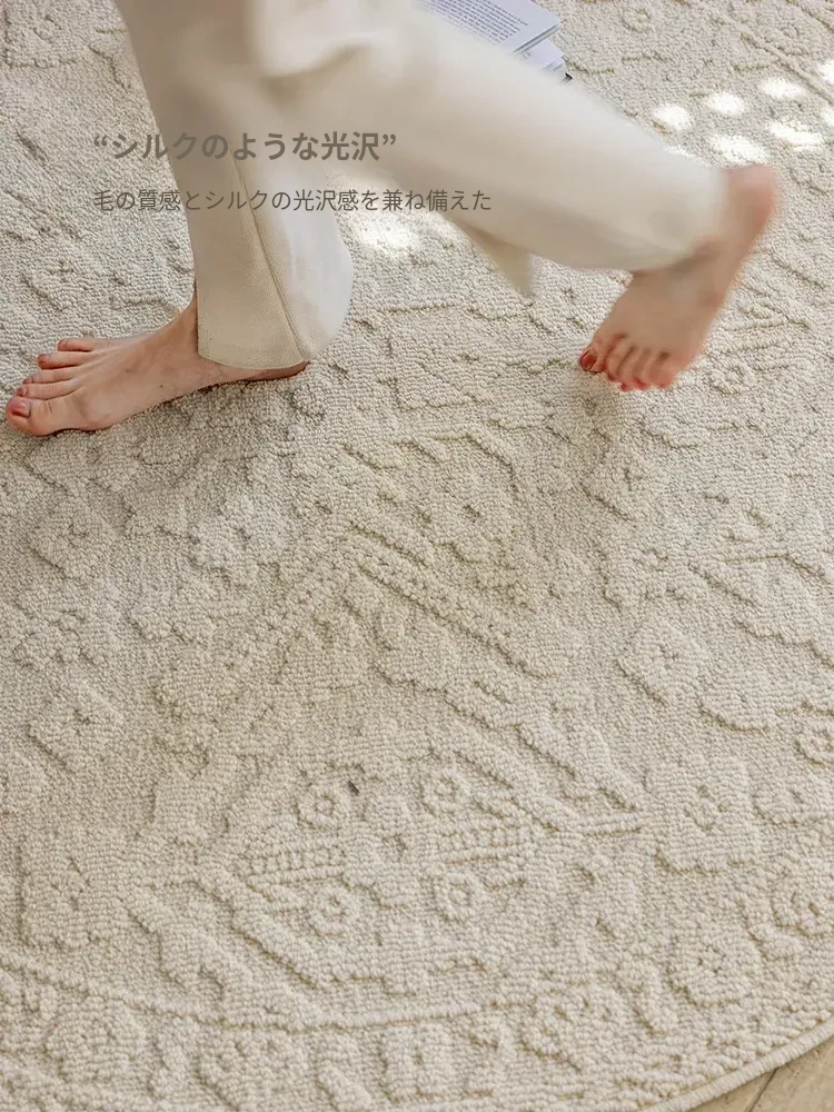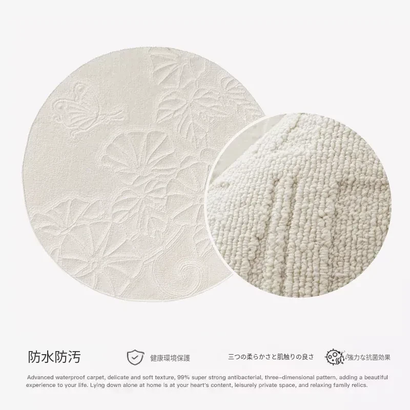 和の美を感じる侘寂スタイルの円形ラグ - インテリアにぴったり!防水・防汚機能付きで、リビング、書斎、寝室、クローゼットに最適。おしゃれなティーテーブルやソファのアクセントにもなる一品です。